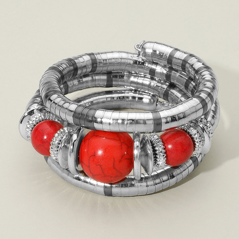 Chunky Beads Accent Adjustable Coil Wrapped Bracelet Chunky Beads Accent Adjustable Coil Wrapped Bracelet Chunky Beads Accent Adjustable Coil Wrapped Bracelet