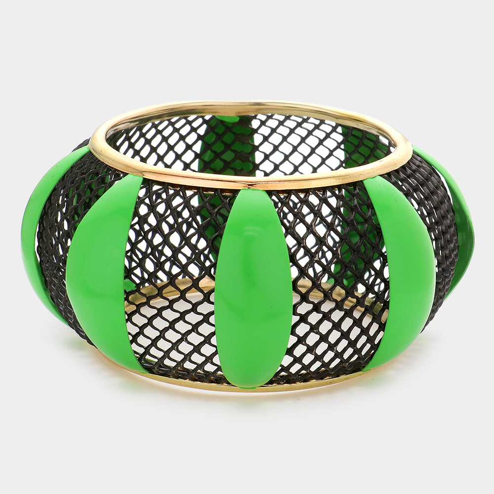 Color Block Enamel Metal Mesh Bangle Bracelet