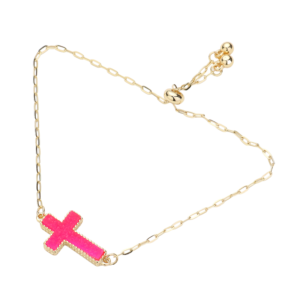 Gold Dipped CZ Embellished Cross Charm Anklet