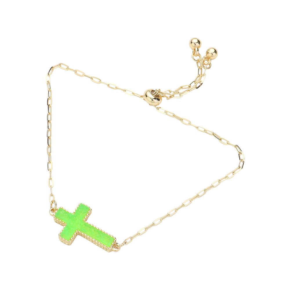 Cross Druzy Adjustable Pull Tie Bracelet