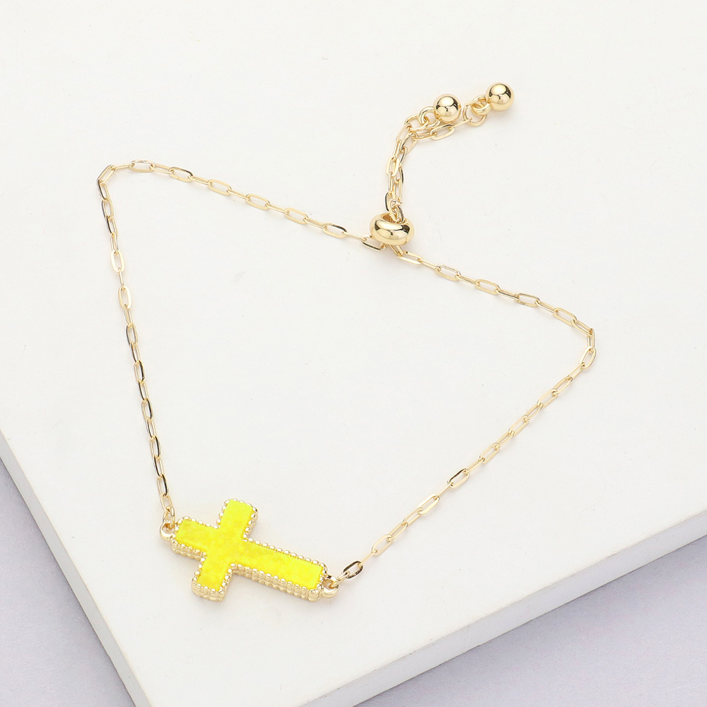 Cross Druzy Adjustable Pull Tie Bracelet