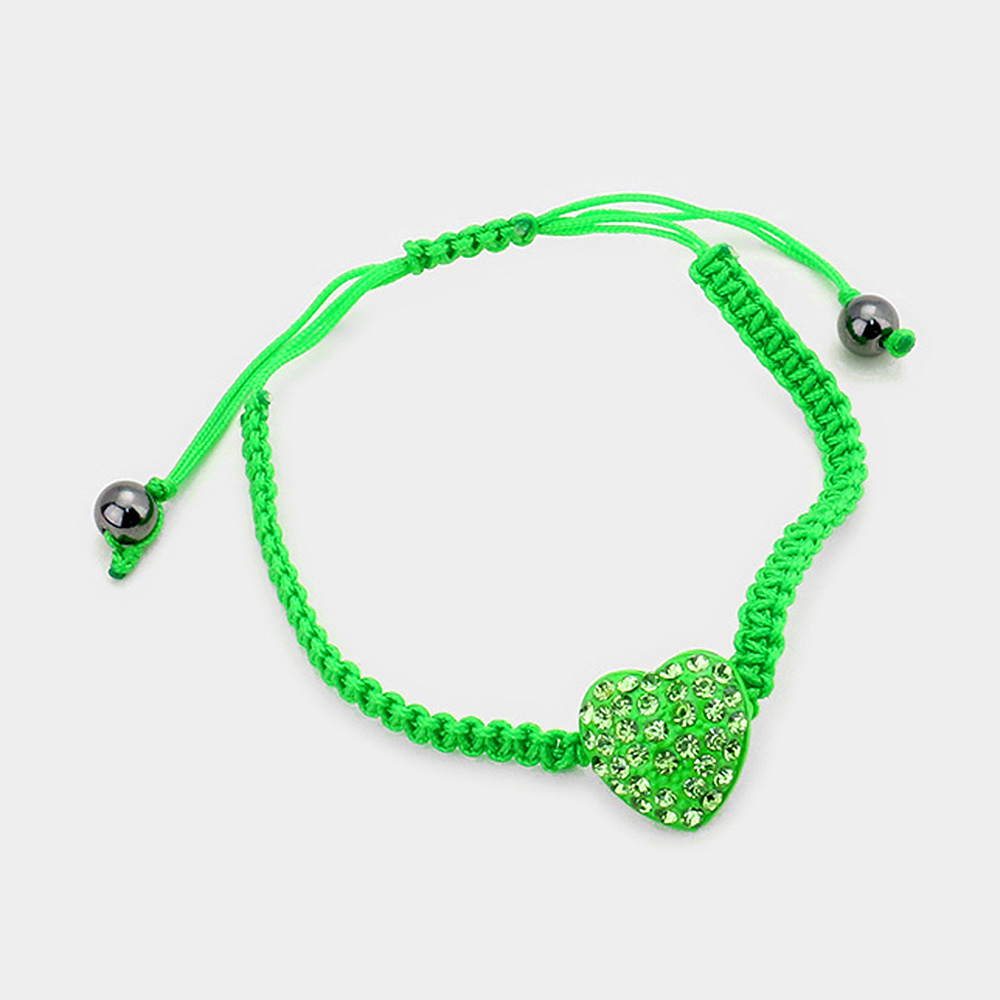 Crystal Paved Heart Pointed Braided Adjustable Cinch Pull Tie Bracelet