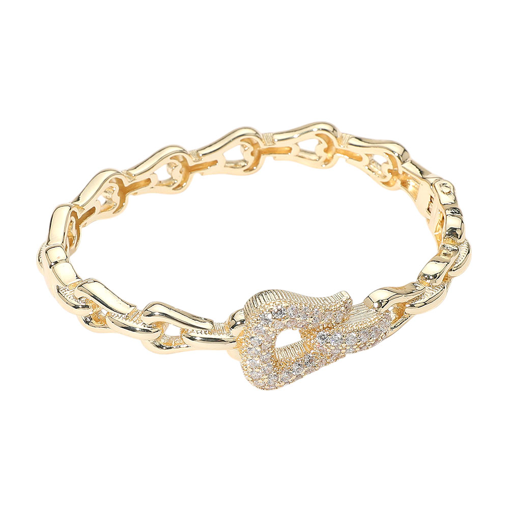 CZ Stone Paved Buckle Accent Link Chain Hinged Bangle Bracelet