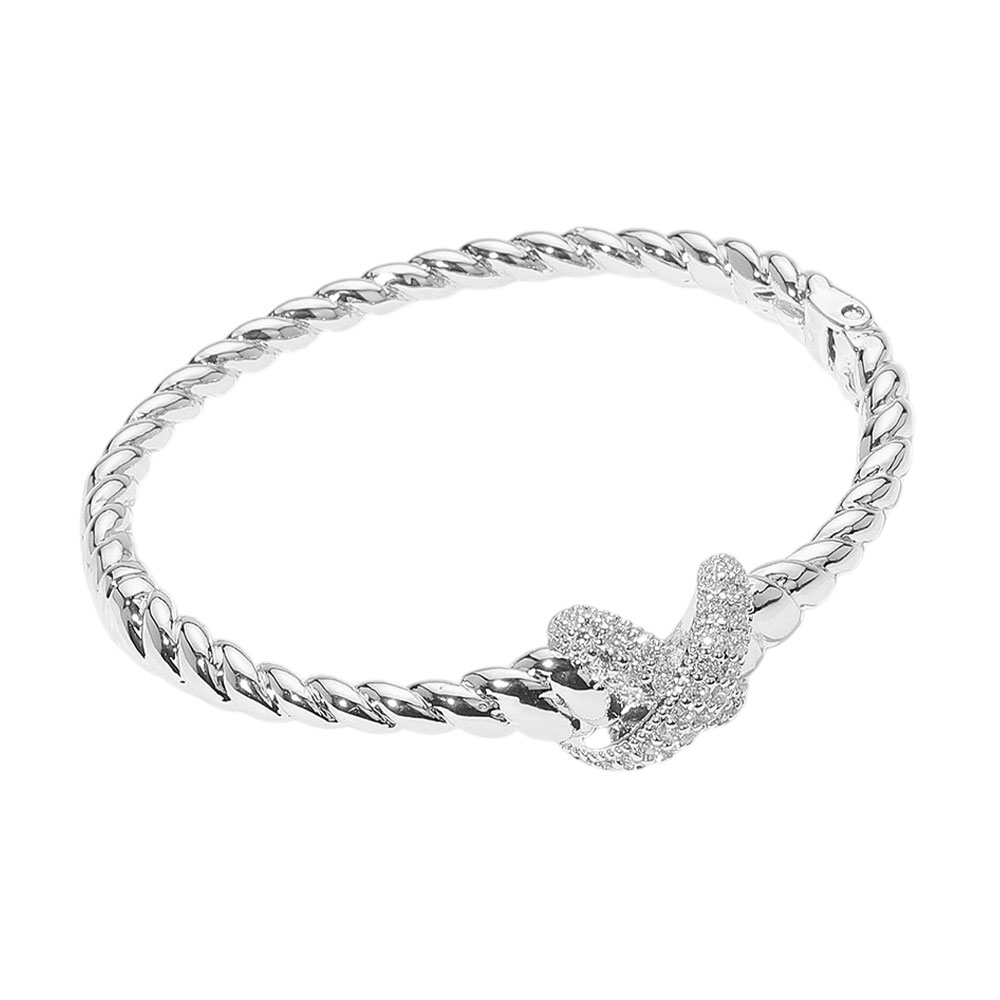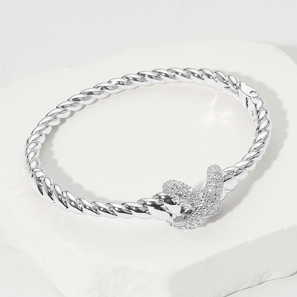 CZ Stone Paved Crisscross Accent Twisted Hinged Bangle Bracelet