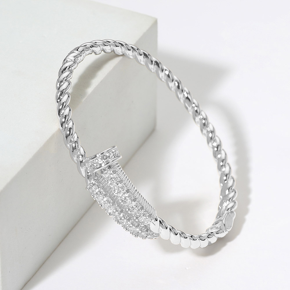 CZ Stone Paved Nail Hinged Bangle Bracelet