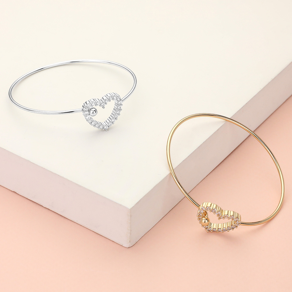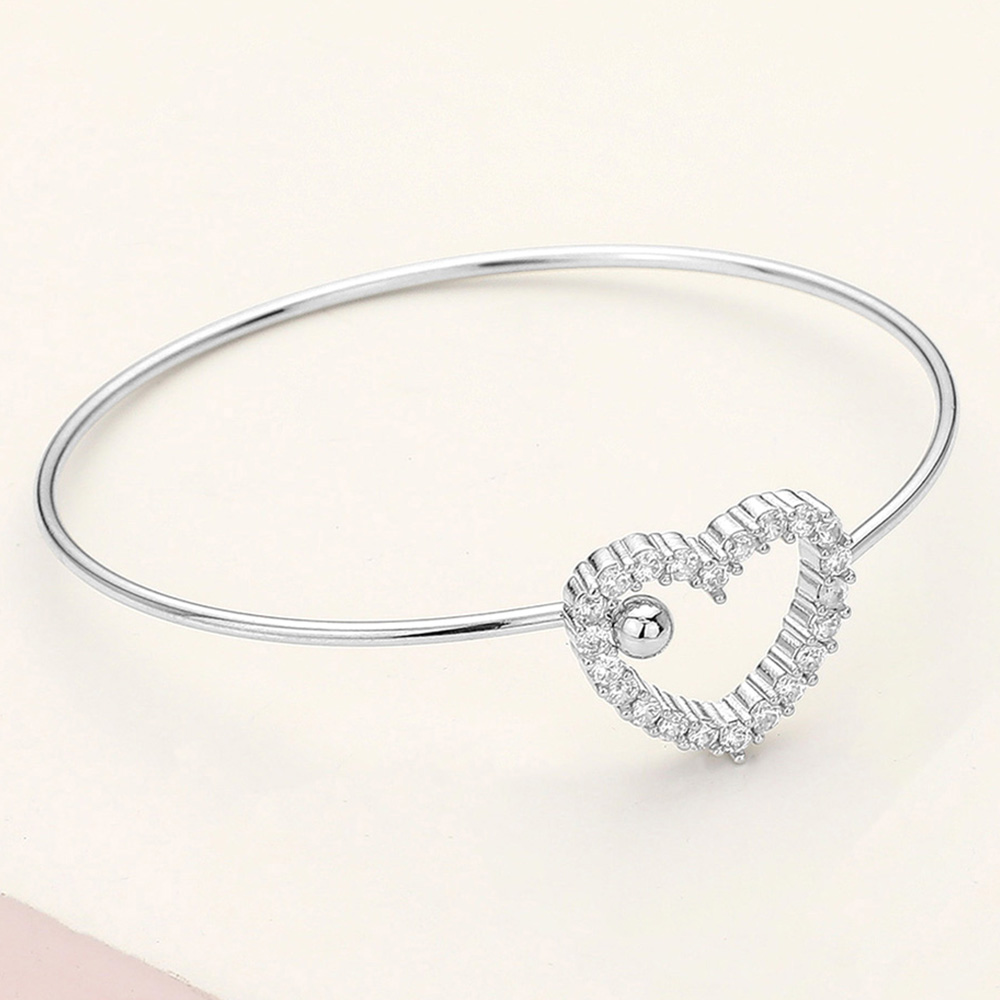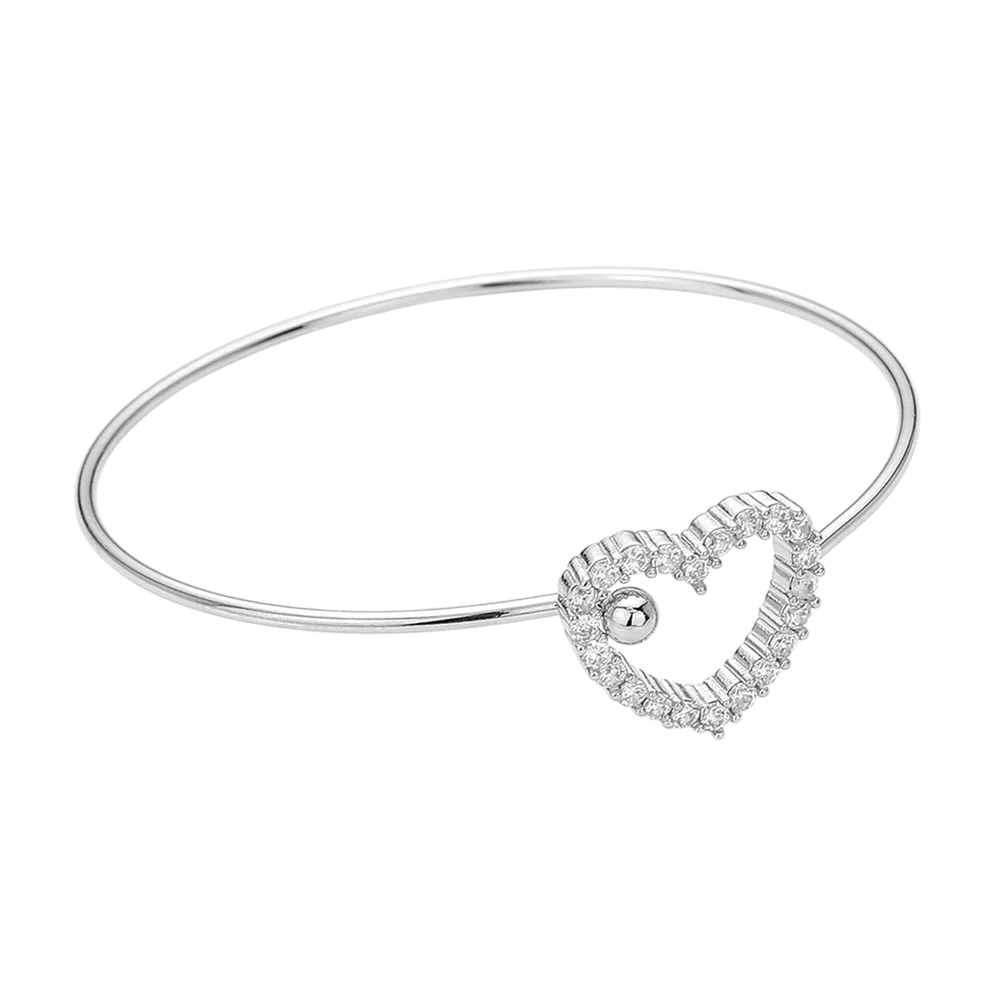 CZ Stone Paved Open Heart Accented Bangle Bracelet