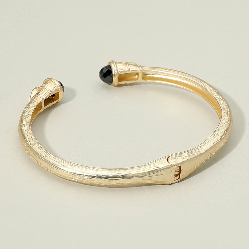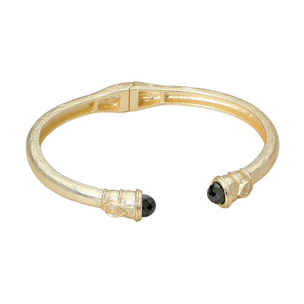 • Sophisticated open cuff bangle featuring gemstone accents on each end with intricate detailing. A timeless bracelet that blends elegance with a bold touch, perfect for both casual wear and special occasions.