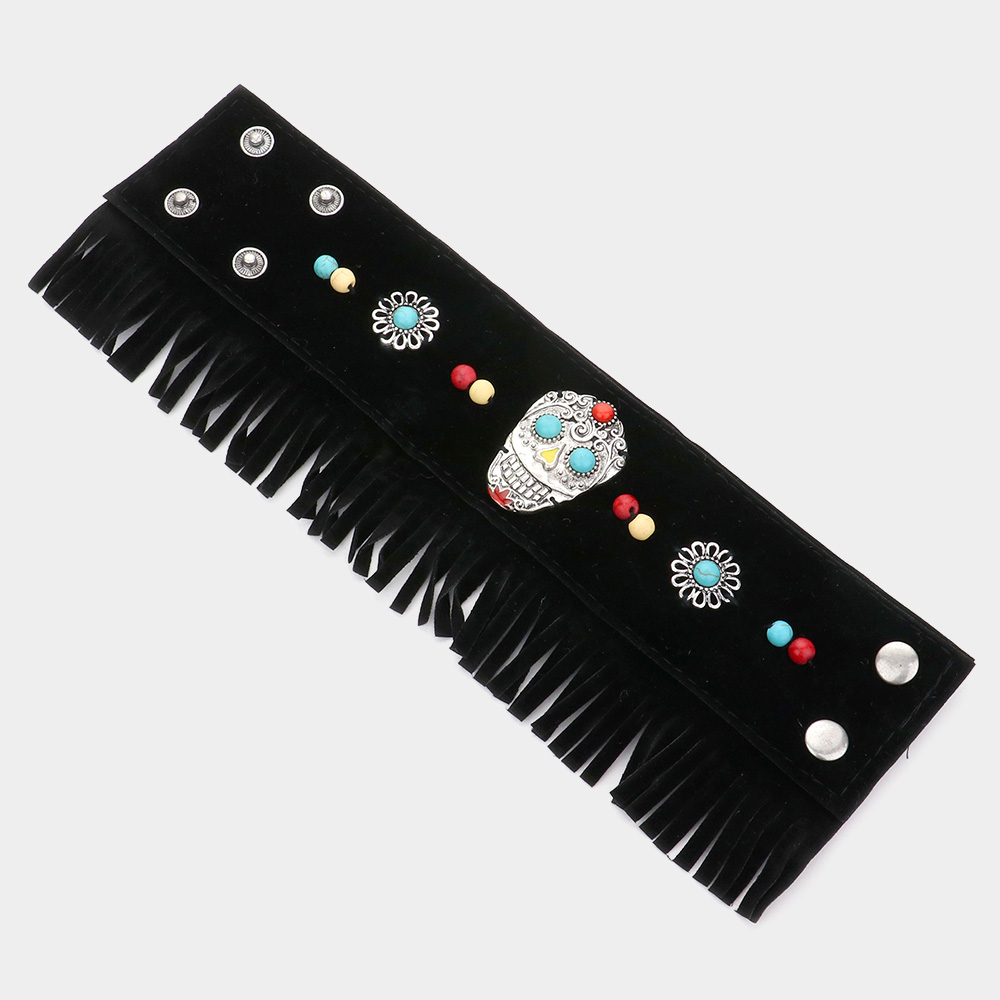 Day of the Dead Mexican Sugar Skull Faux Suede Fringe Bracelet