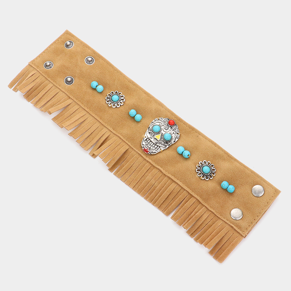 Day of the Dead Mexican Sugar Skull Faux Suede Fringe Bracelet