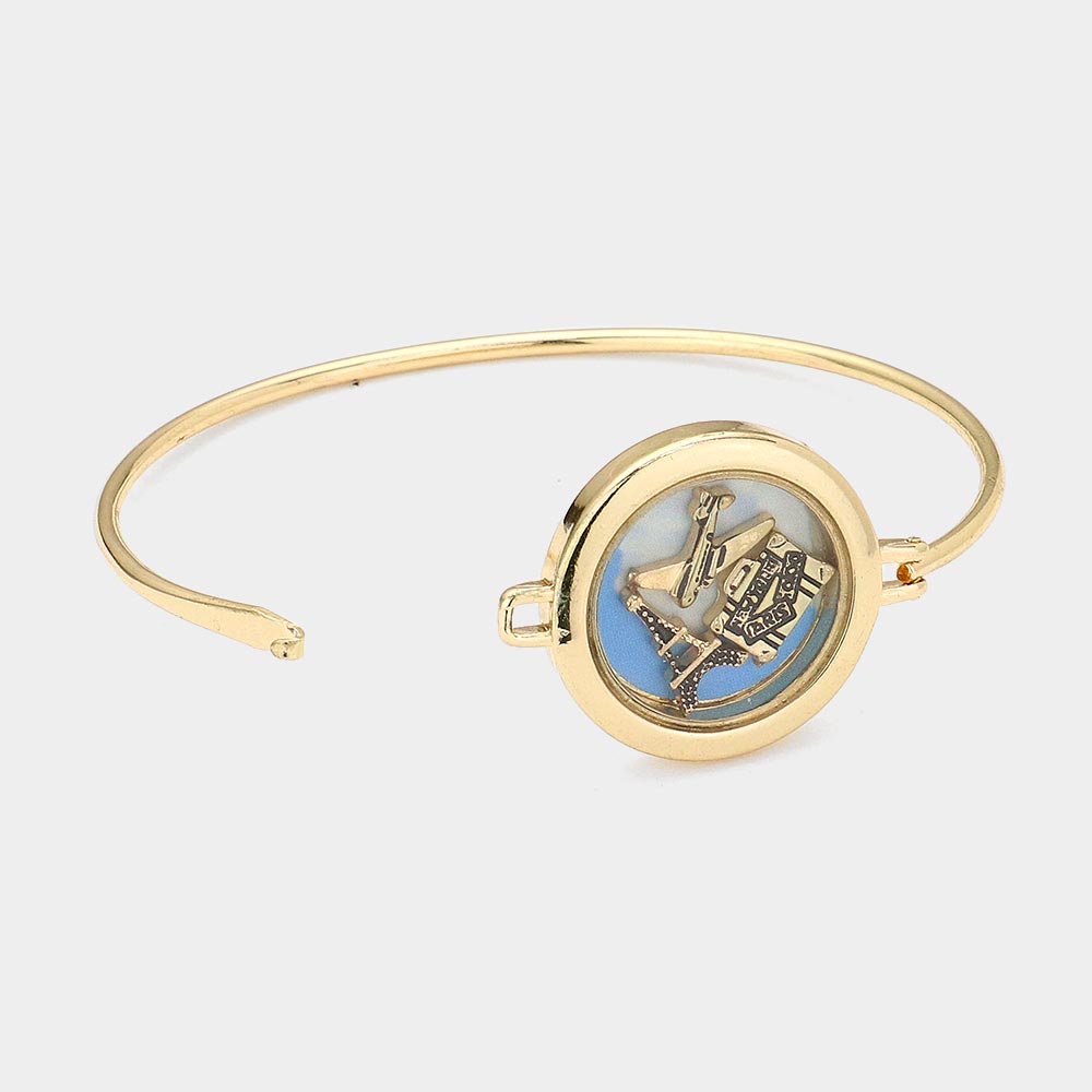 Eiffel Tower & Air Plane Romantic Journey Floating Locket Hook Bracelet