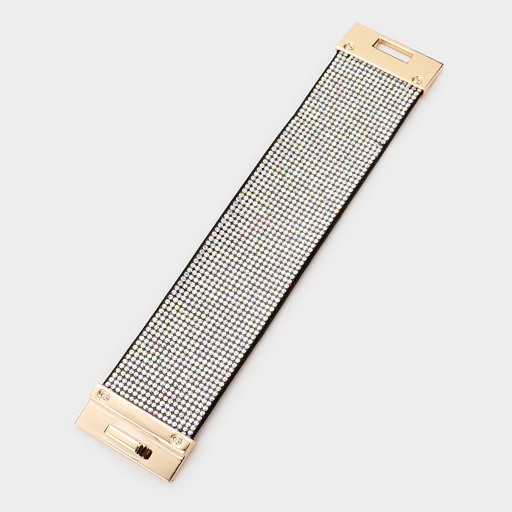 Embellished Rhinestone Wide Turn Lock Bracelet