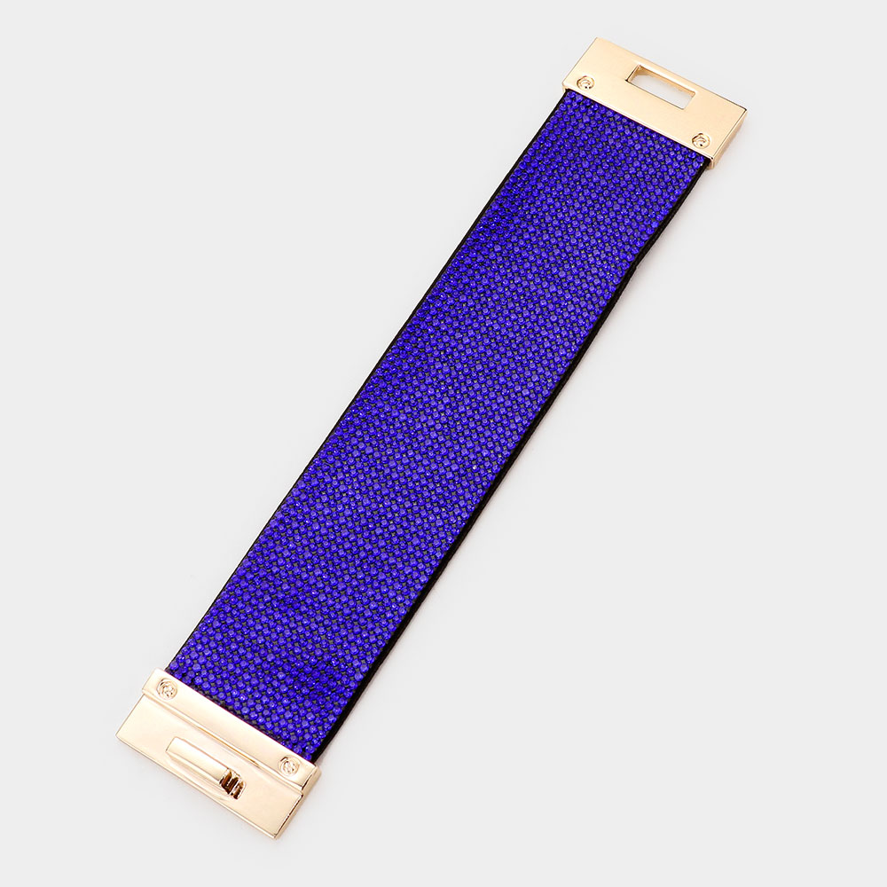 Embellished Rhinestone Wide Turn Lock Bracelet