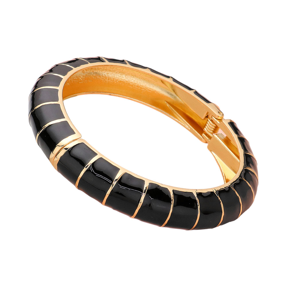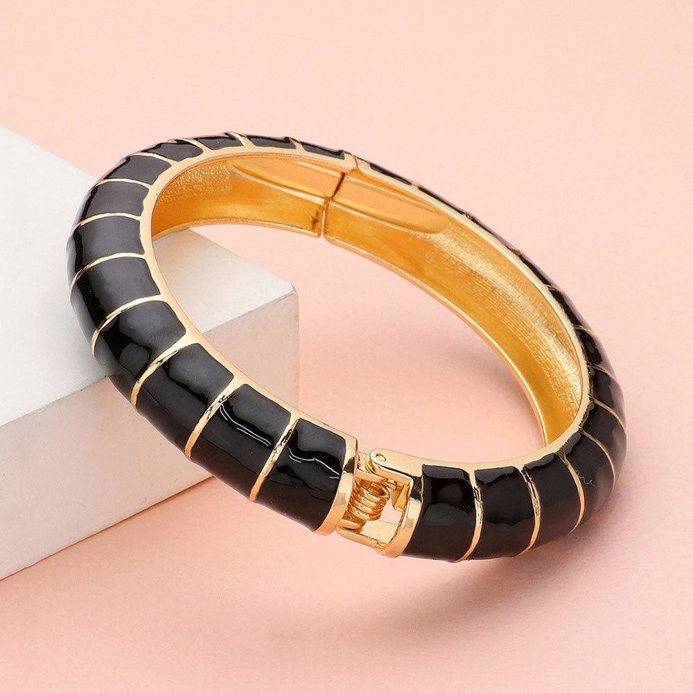 Details • Size : 0.6" H, 2.5" D • Hinged Closure • Elegant segmented bangle bracelet with a secure hinged closure and sleek, bold design. A statement accessory that elevates both casual and formal outfits with a touch of modern flair. • Lead and Nickel Compliant