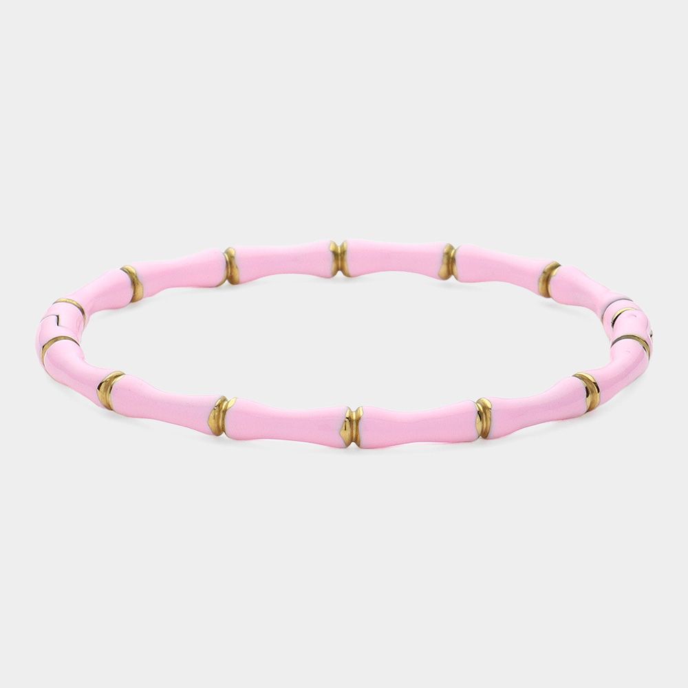 5PCS - Resin Bamboo Beaded Stretch Glossy Metal Bangle Stackable Multi Layered Bracelets