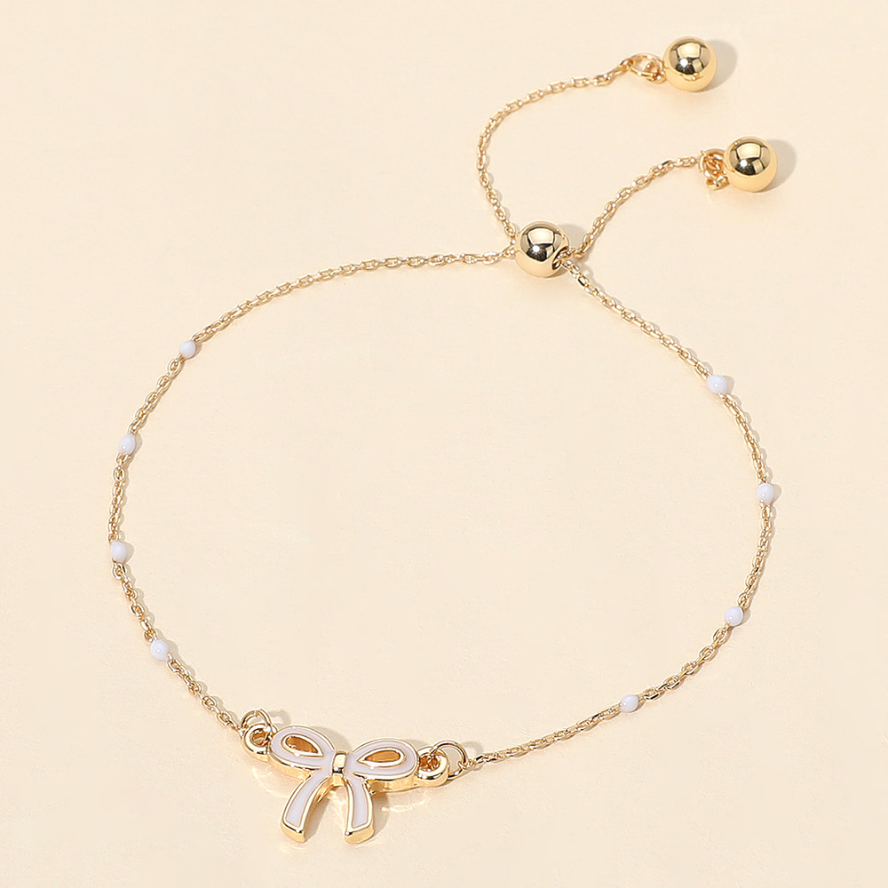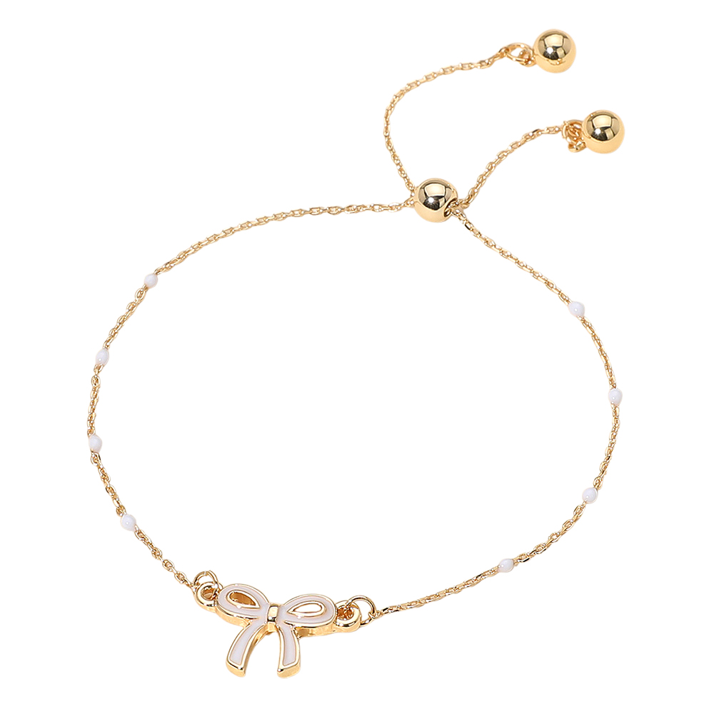 Enamel Bow Dainty Adjustable Cinch Pull Tie Bracelet