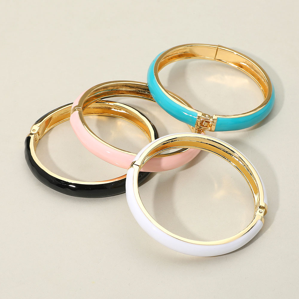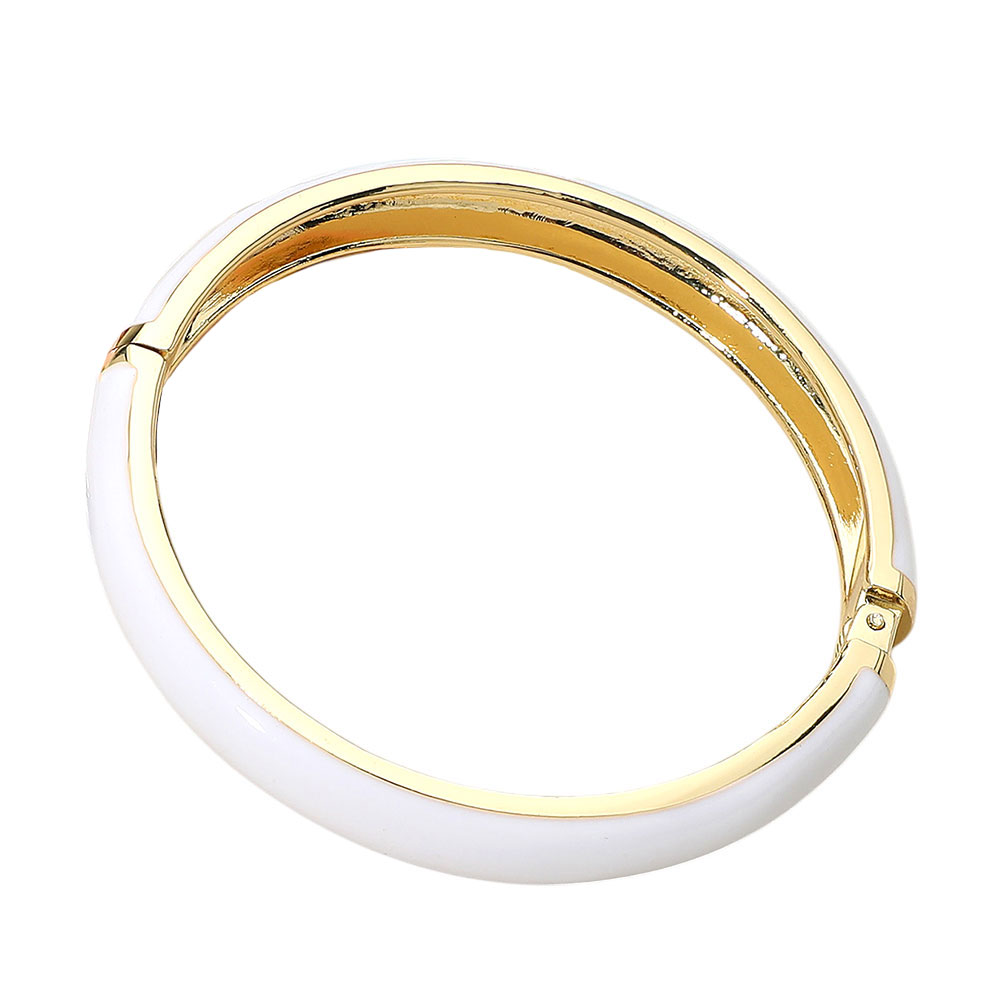 Details • Size : 0.3" H, 2.4" D • Hinged Closure • Add a pop of elegance with this sleek hinged bangle bracelet. Its smooth, polished finish and secure closure make it a versatile accessory, perfect for stacking with other pieces or wearing solo to bring effortless sophistication to any look. • Lead and Nickel Compliant