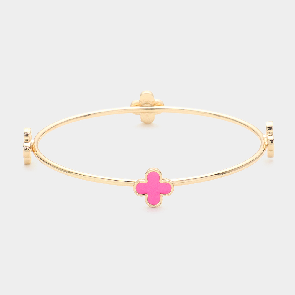 Enamel Quatrefoil Pointed Bangle Bracelet