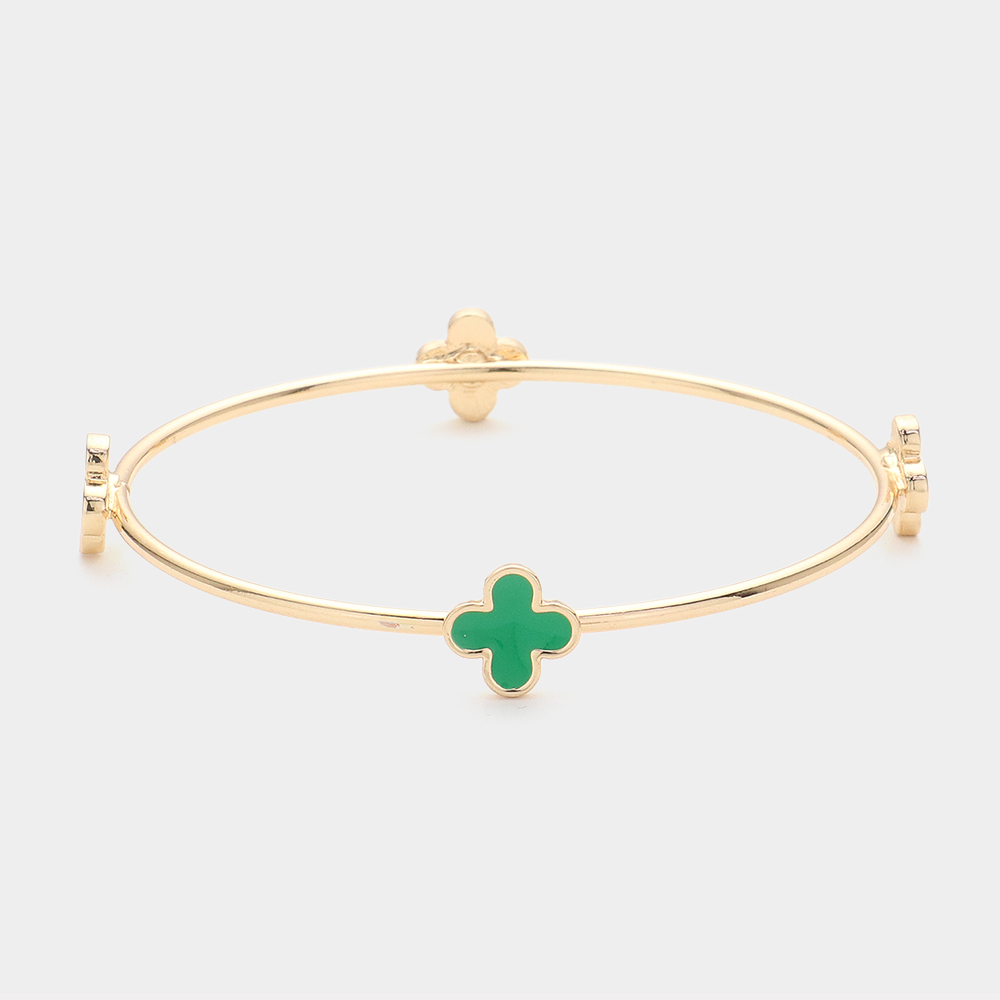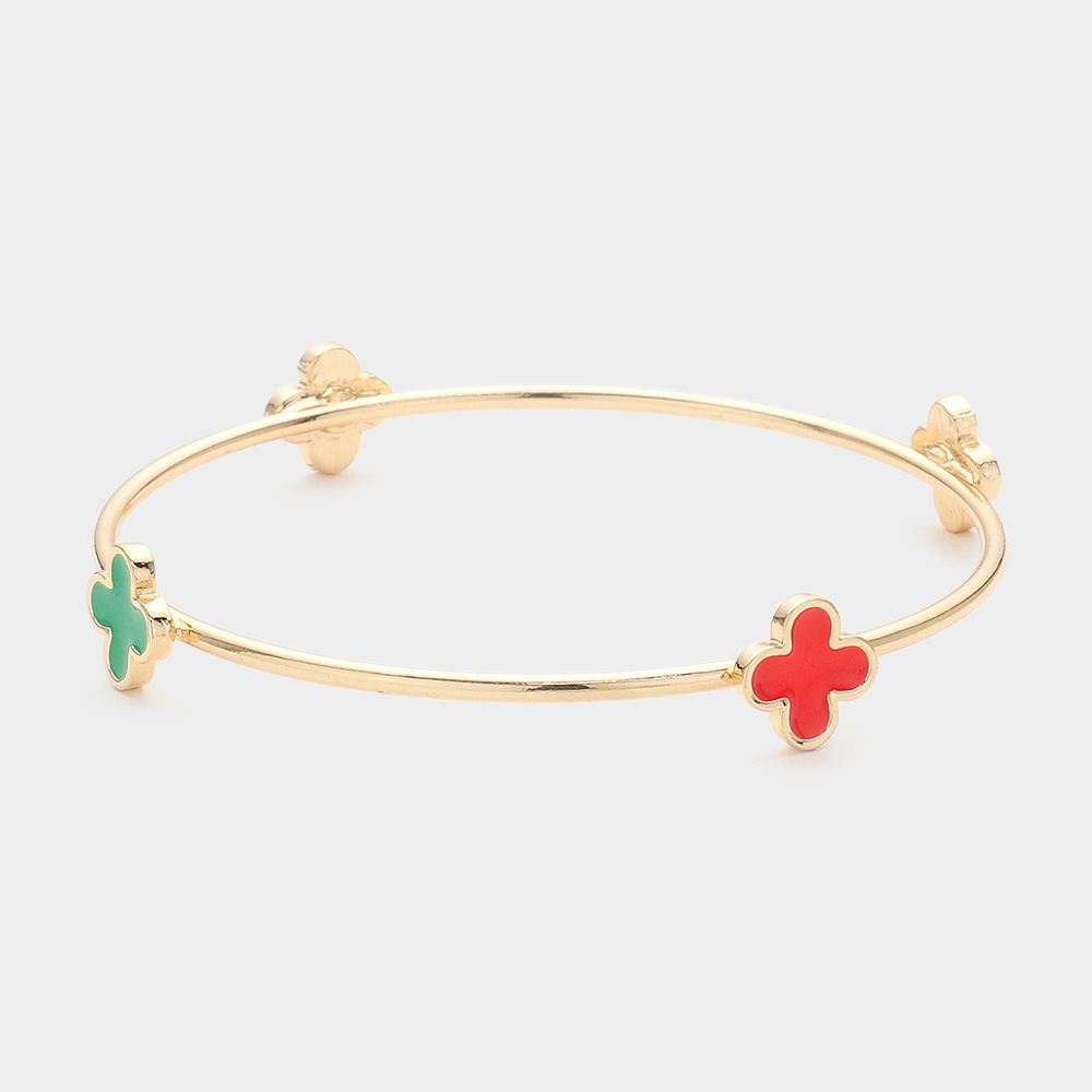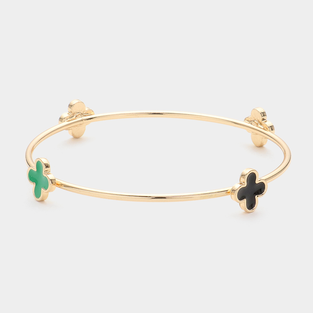 Enamel Quatrefoil Pointed Bangle Bracelet