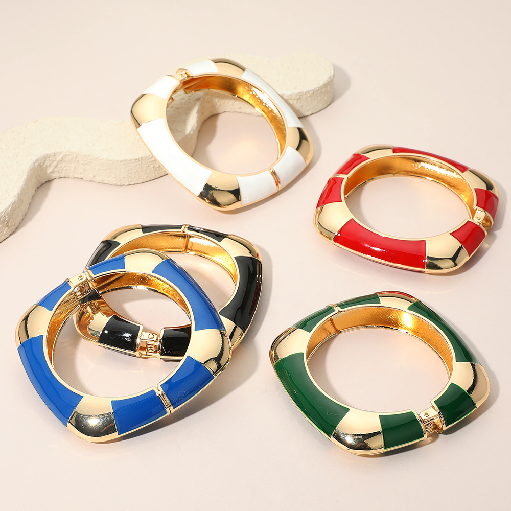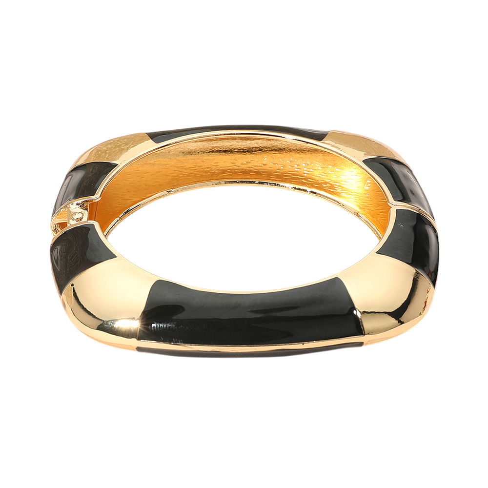 Details • Size : 0.6" H, 2.3" D • Hinged Closure • Modern striped hinged bangle bracelet designed to elevate your everyday or evening outfits. With its sleek geometric accents and secure fit, this versatile accessory adds a statement touch to any wardrobe, perfect for stacking or wearing solo.