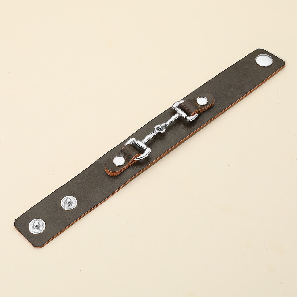 Details • Size : 1" H, 7.5" 1.5" L • Snap Button Closure • Elevate your style with this equestrian-inspired cuff bracelet, featuring a classic bit design and secure snap closure. Perfect for adding a bold, refined touch to casual or statement looks. • Lead and Nickel Compliant