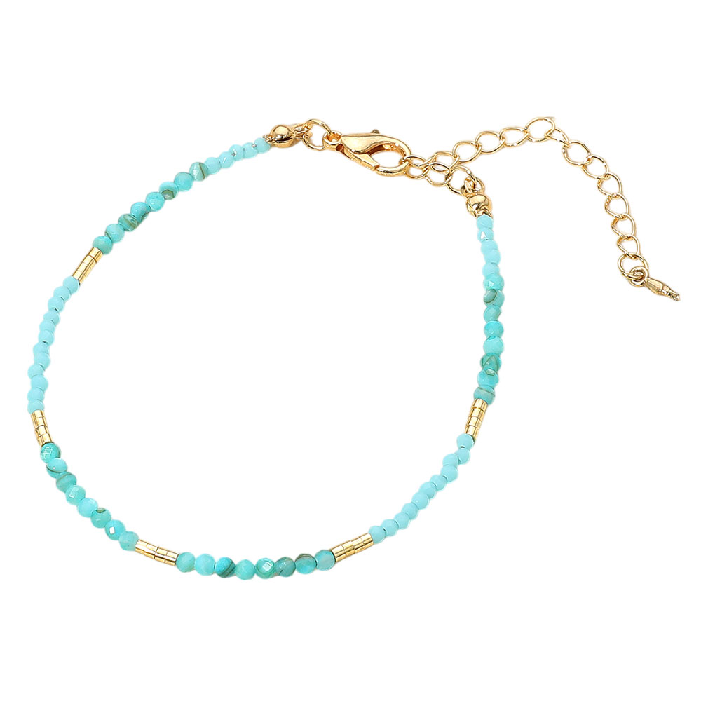 Details • Size : 0.1" H, 7.25" + 2.5" L • Lobster Clasp Closure • Chic adjustable beaded bracelet with gold accents. Lightweight and elegant for daily wear or gifting. Features vibrant mini beads and secure lobster clasp. Perfect for stacking. • Lead and Nickel Compliant