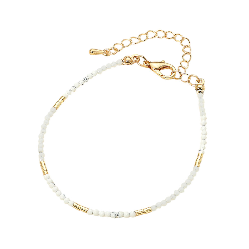Details • Size : 0.1" H, 7.25" + 2.5" L • Lobster Clasp Closure • Chic adjustable beaded bracelet with gold accents. Lightweight and elegant for daily wear or gifting. Features vibrant mini beads and secure lobster clasp. Perfect for stacking. • Lead and Nickel Compliant