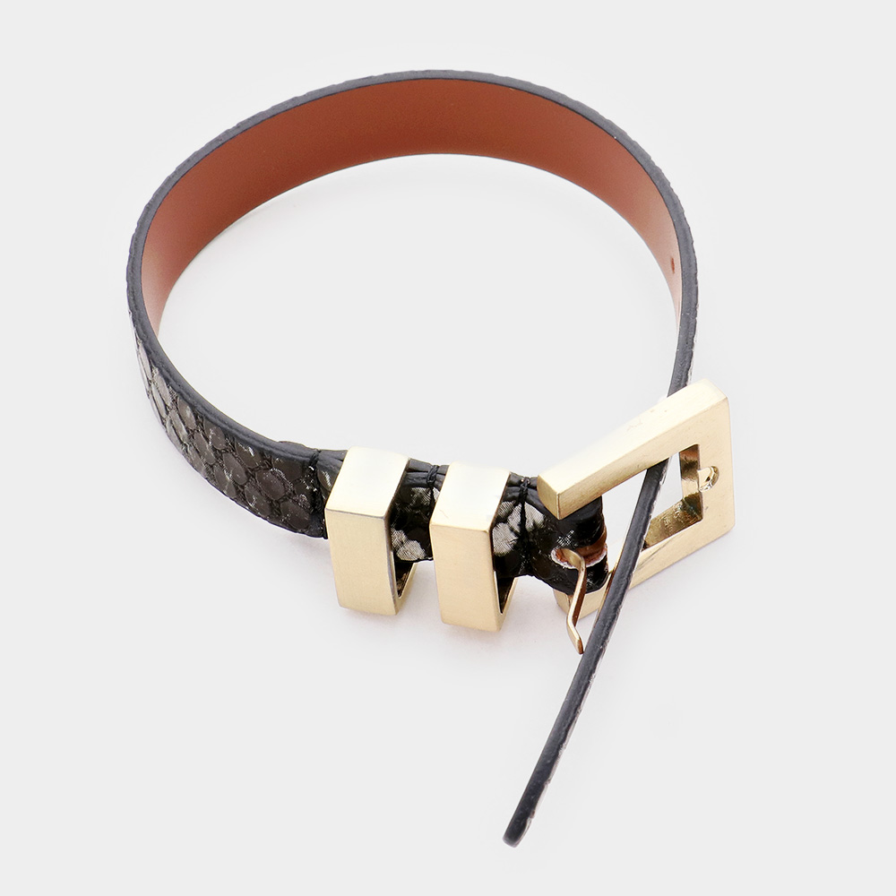 Faux Leather Animal Pattern Belt Buckle Wrap Bracelet