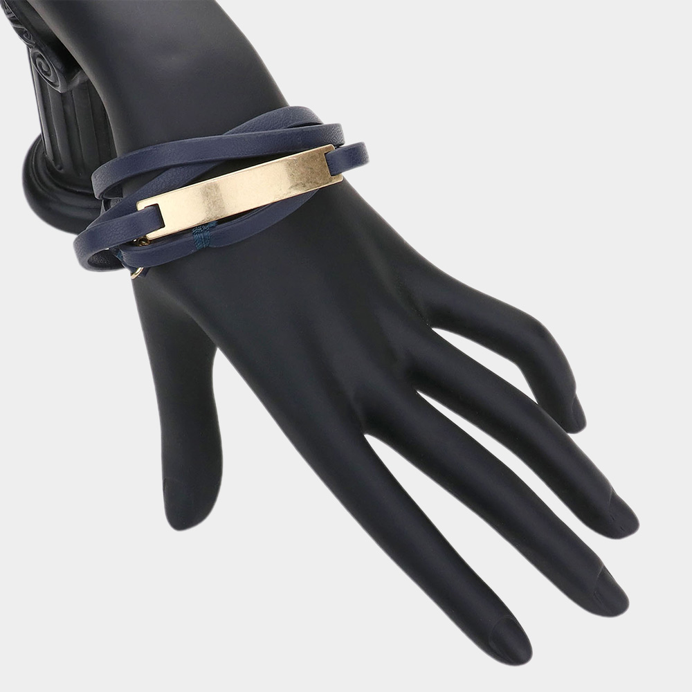 Two Tone Round Stone Pointed Circle Tip Cuff Bracelet