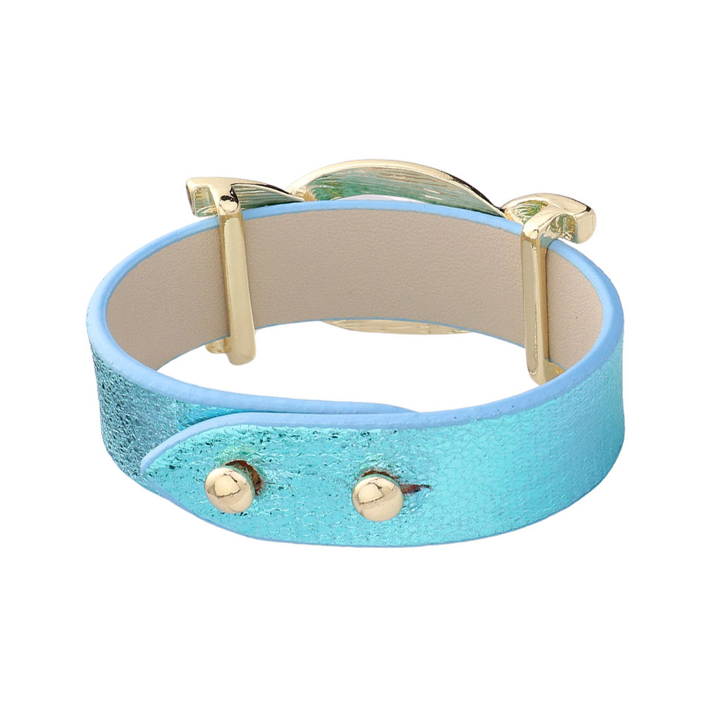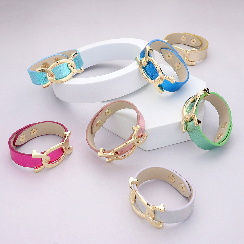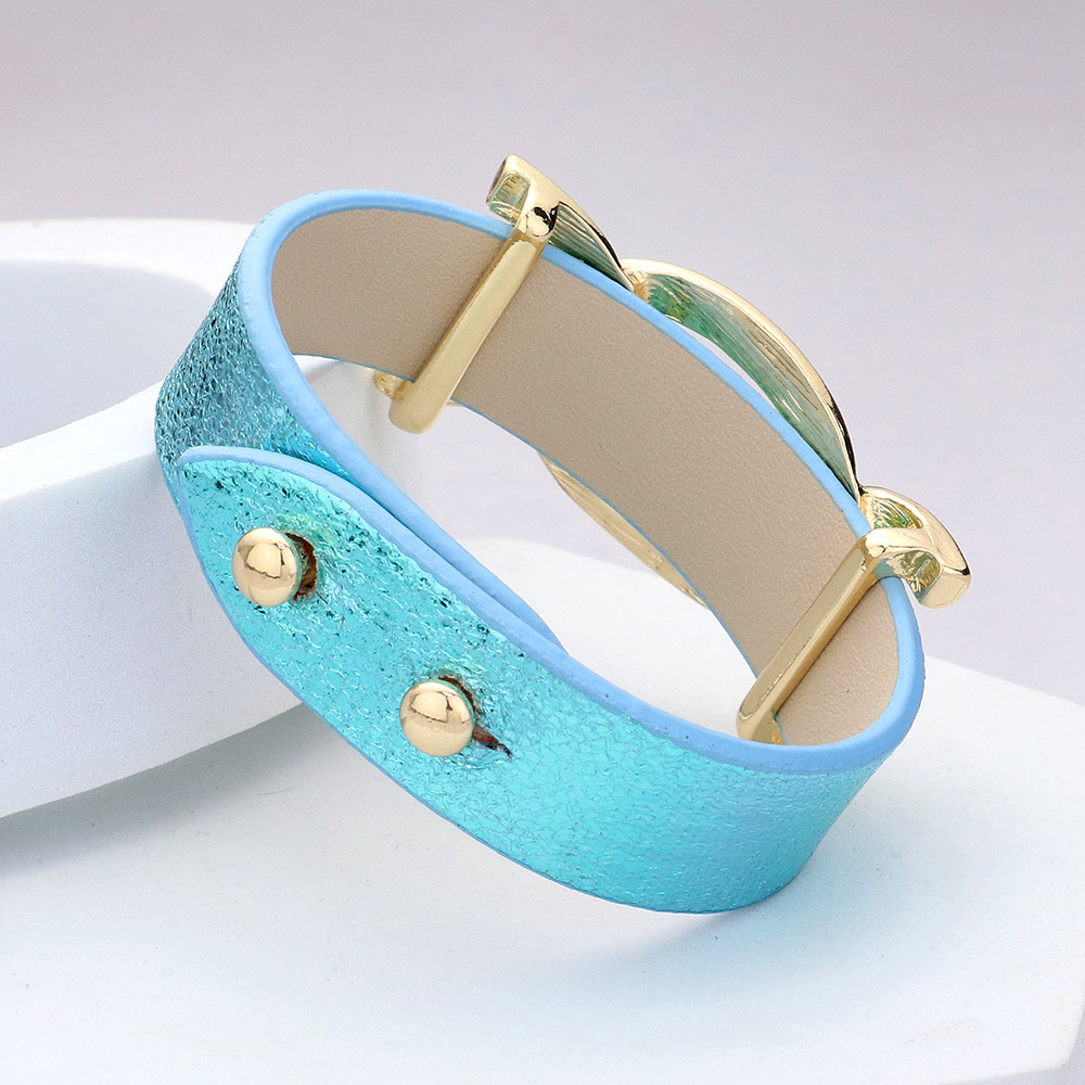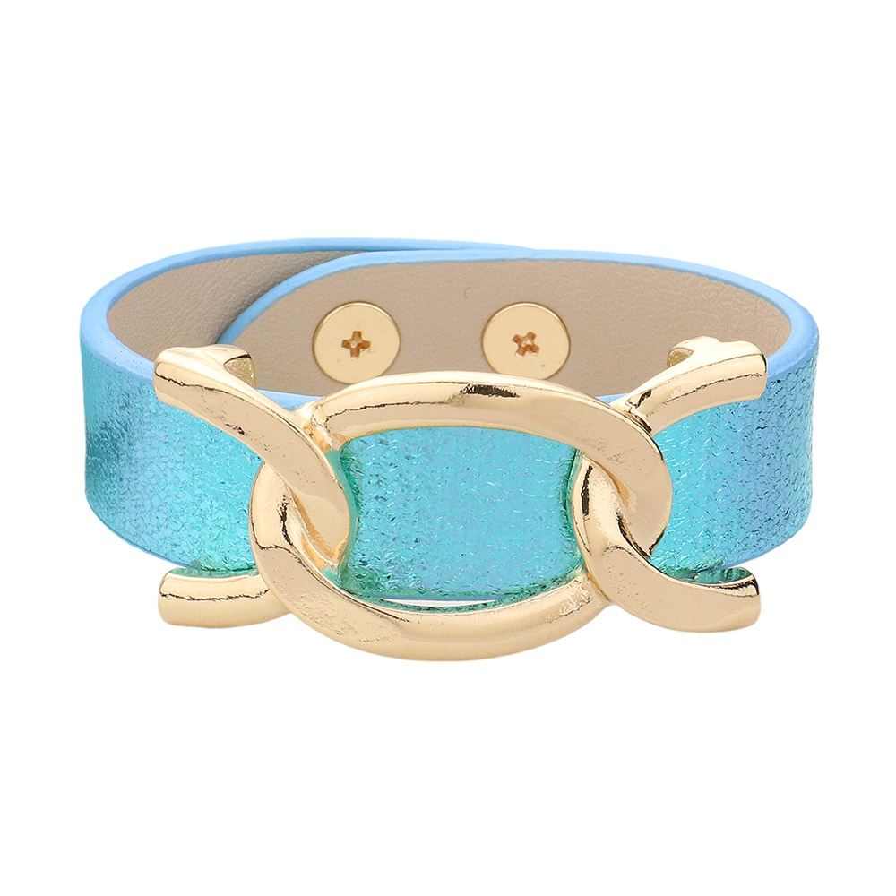Faux Sparkle Leather Metal Link Accented Snap Bracelet