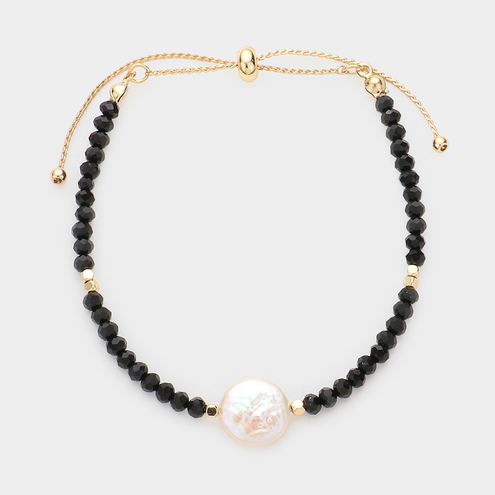 Freshwater Pearl Accented Faceted Beaded Adjustable Cinch Pull Tie Bracelet