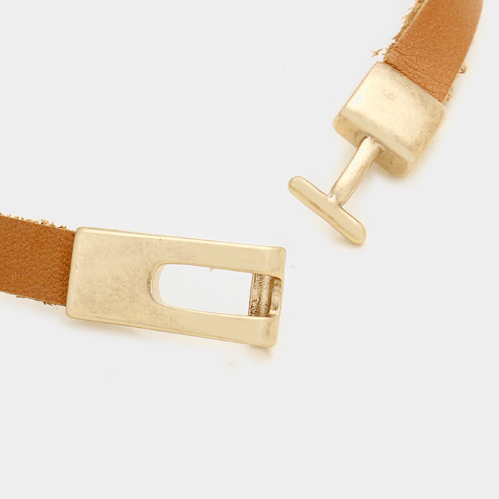 Equestrian-Inspired Horsebit Accent Faux Leather Snap Bracelet