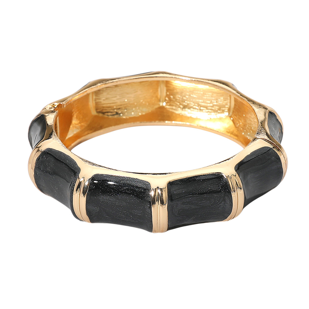 • Stylish enamel hinged bangle bracelet featuring a smooth wave-inspired bamboo shape with a glossy finish. The elegant segmented design adds a modern touch to any outfit, making it ideal for casual and dressy looks. Perfect accessory to elevate everyday or evening style.
