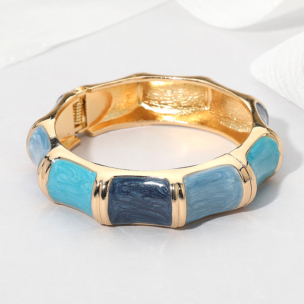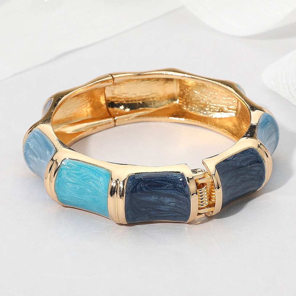 • Stylish enamel hinged bangle bracelet featuring a smooth wave-inspired bamboo shape with a glossy finish. The elegant segmented design adds a modern touch to any outfit, making it ideal for casual and dressy looks. Perfect accessory to elevate everyday or evening style.