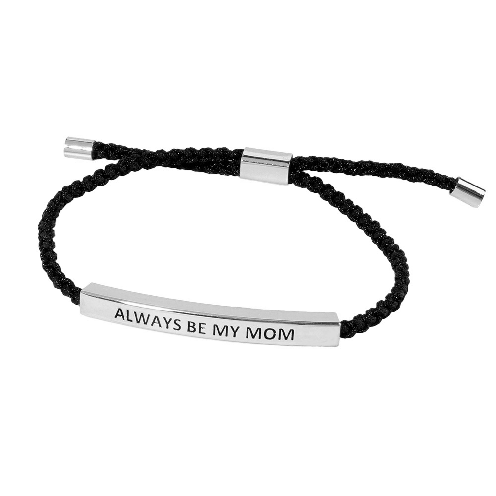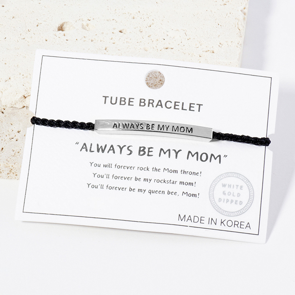 White Gold Dipped ALWAYS Message Bar Pointed Rope Adjustable Bracelet