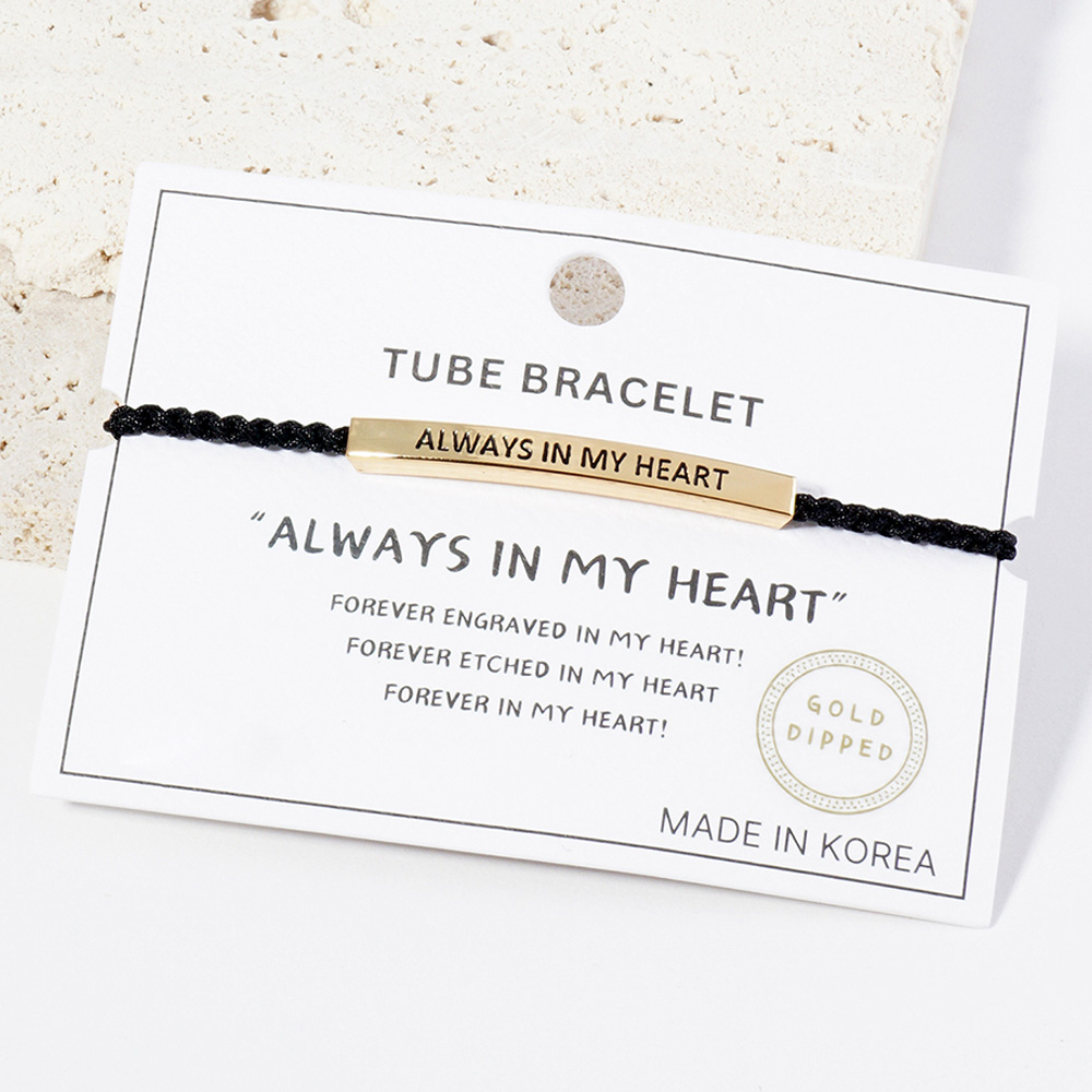 Gold Dipped ALWAYS BE MY MOM Message Bar Pointed Rope Adjustable Cinch Pull Tie Bracelet