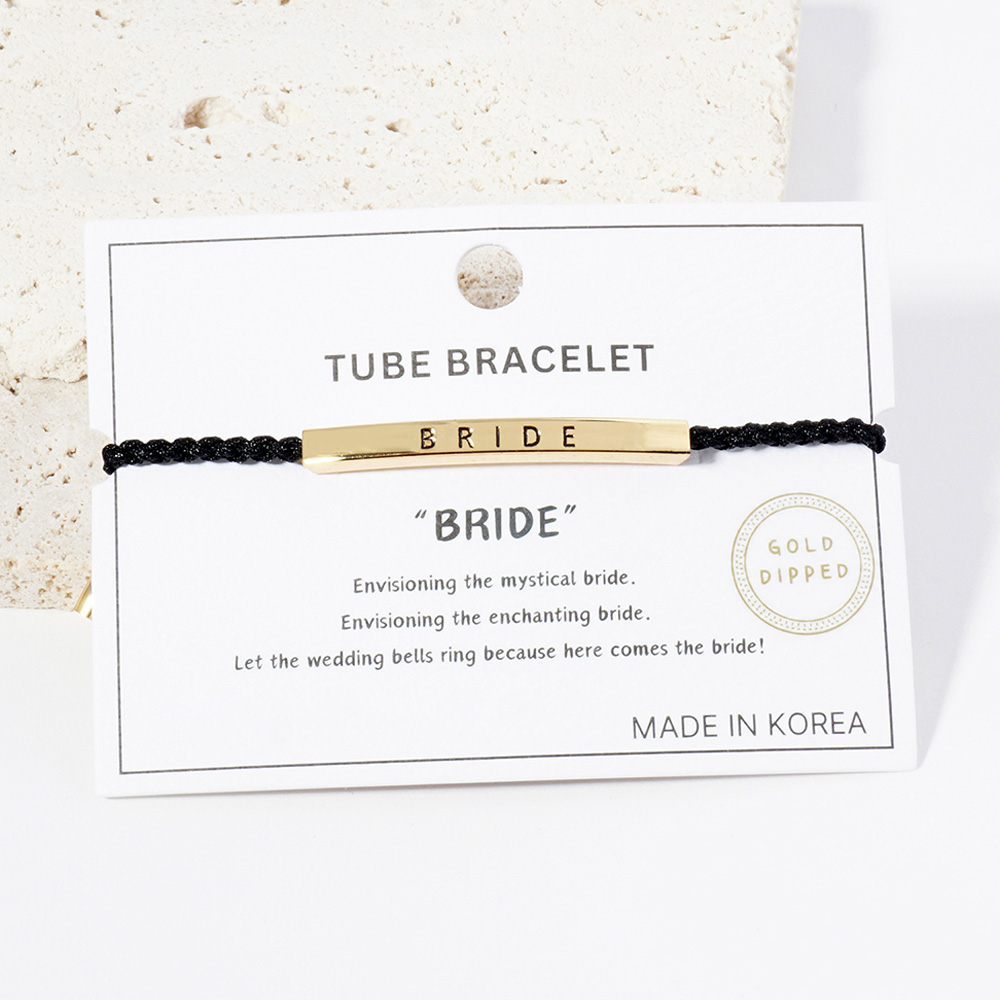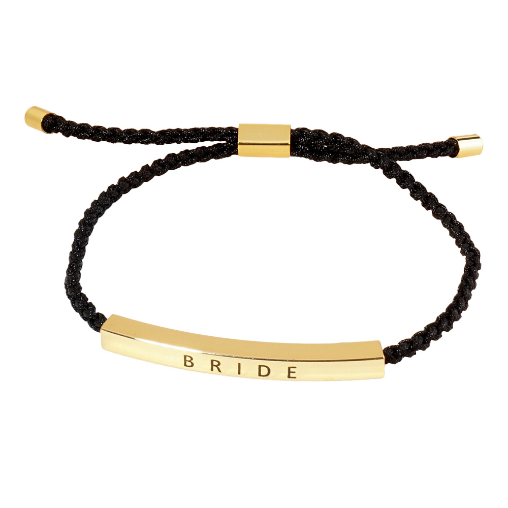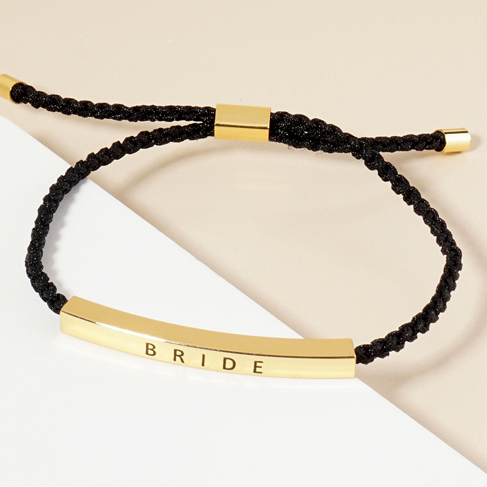 Gold Dipped BRIDESMAID Message Bar Pointed Rope Adjustable Cinch Pull Tie Bracelet