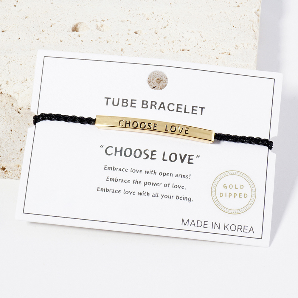 Gold Dipped CHOOSE LOVE Message Bar Pointed Rope Adjustable Cinch Pull Tie Bracelet