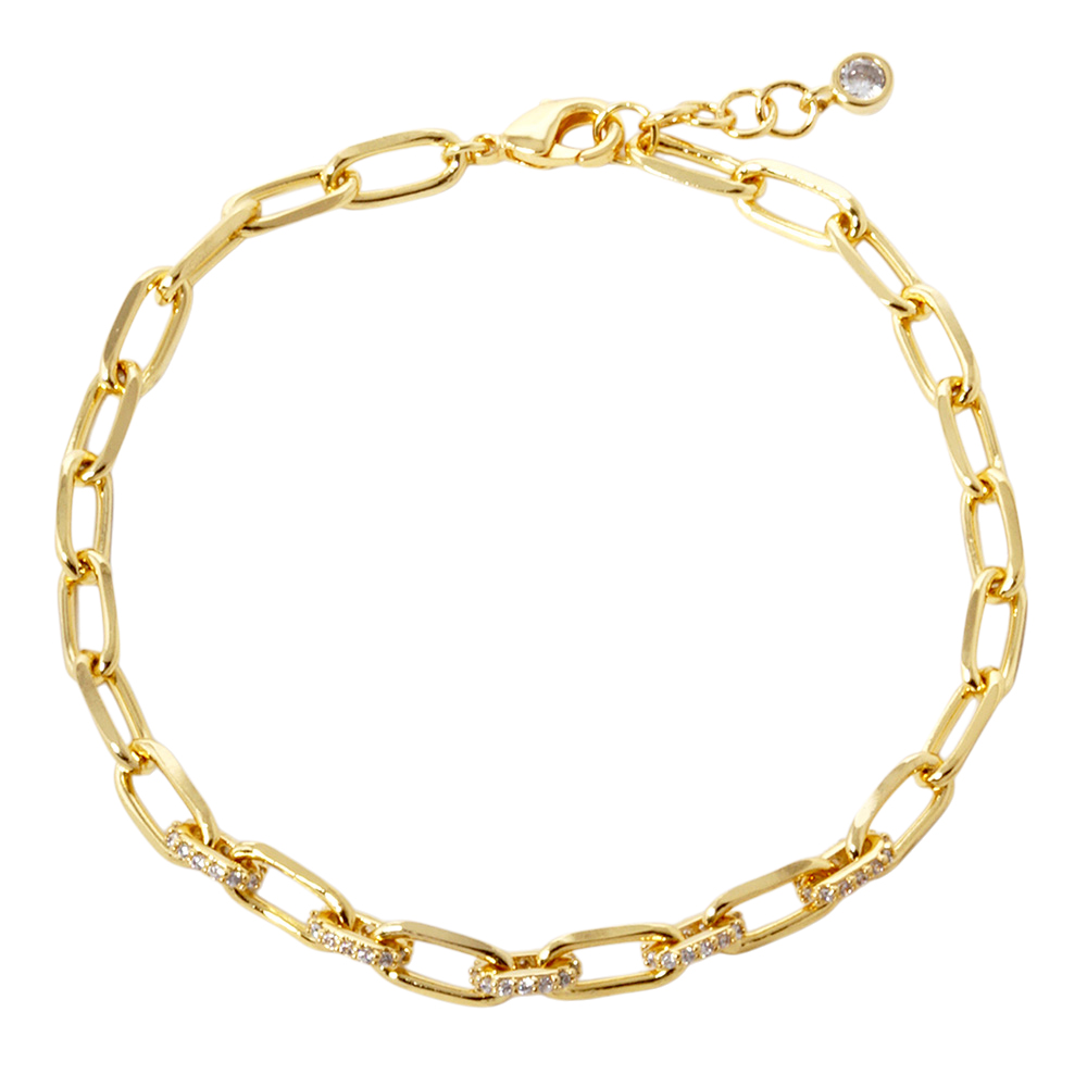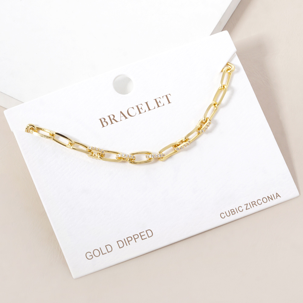Gold Dipped CZ Stone Paved Paperclip Chain Bracelet