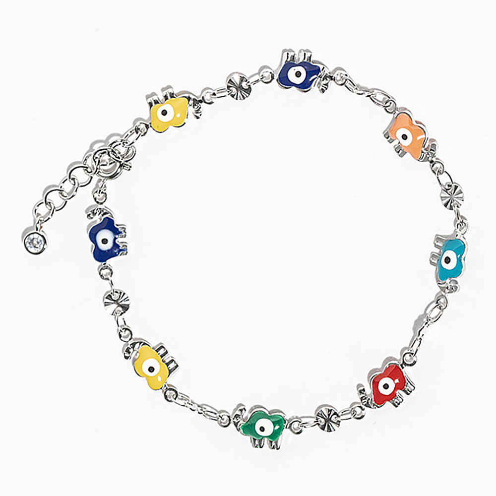 • Embrace charm and protection with this elegant elephant bracelet featuring evil eye accents. Its intricate design symbolizes luck and positivity, making it a meaningful accessory to complement any outfit or a thoughtful gift for loved ones.