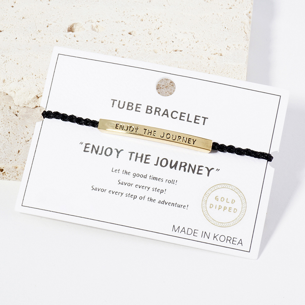 White Gold Dipped ENJOY THE JOURNEY Message Bar Pointed Rope Adjustable Cinch Pull Tie Bracelet