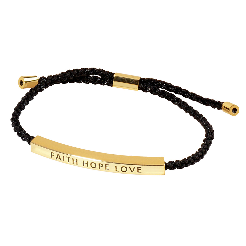 White Gold Dipped FAITH HOPE LOVE Message Bar Pointed Rope Adjustable Cinch Pull Tie Bracelet
