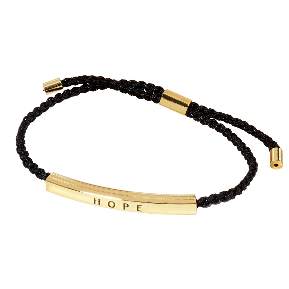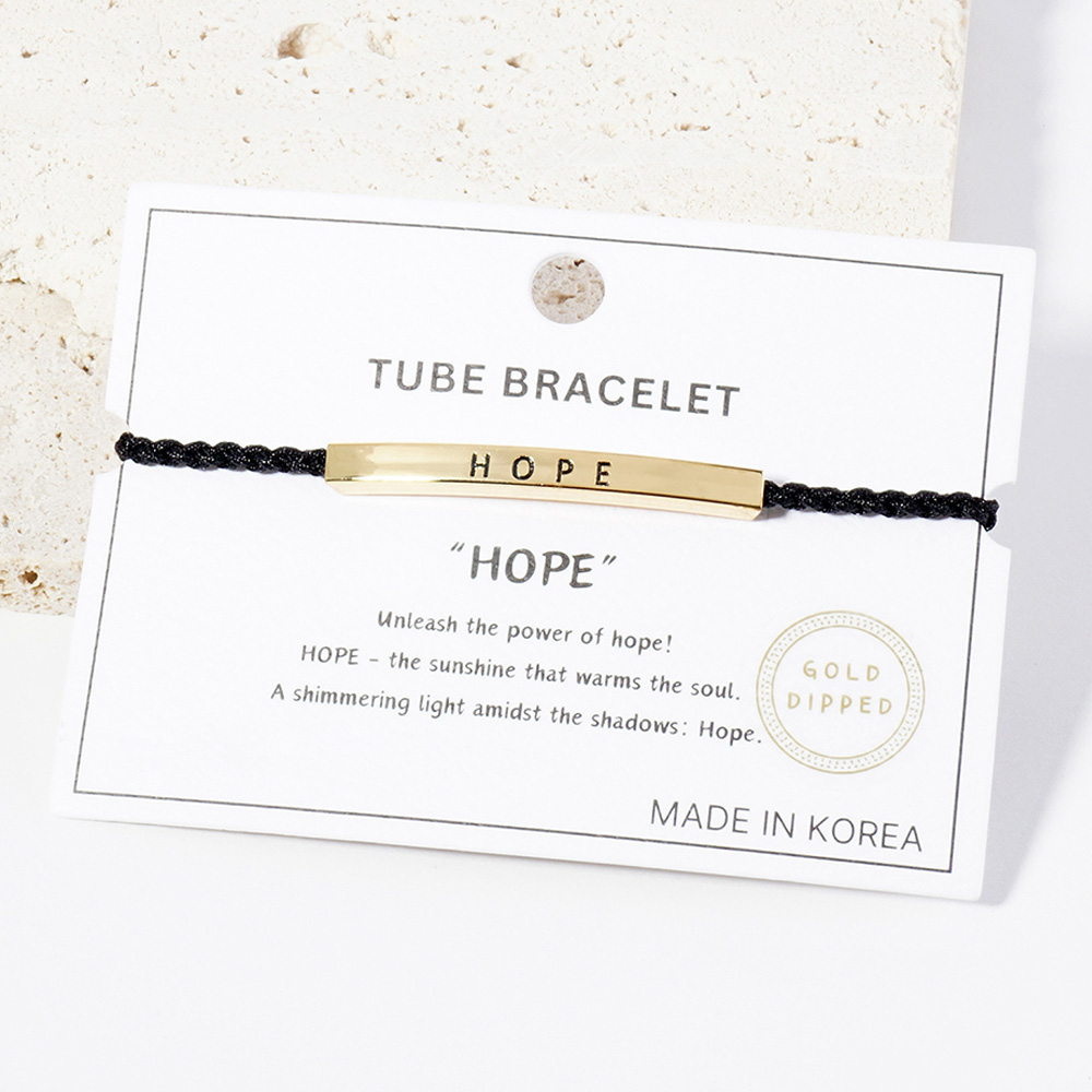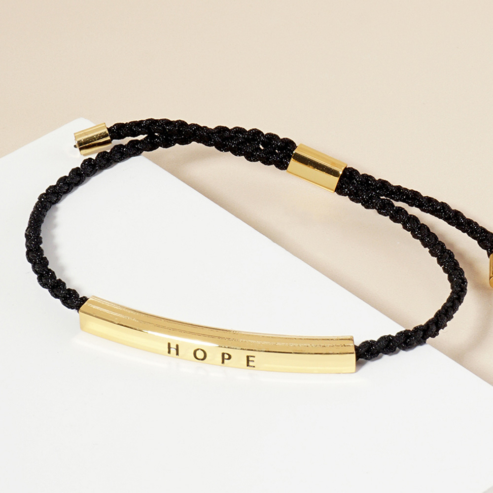 Gold Dipped FAITH HOPE LOVE Message Bar Pointed Rope Adjustable Cinch Pull Tie Bracelet