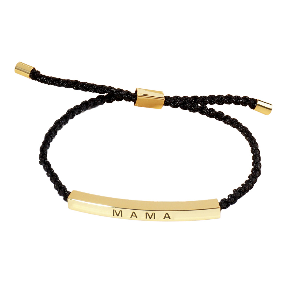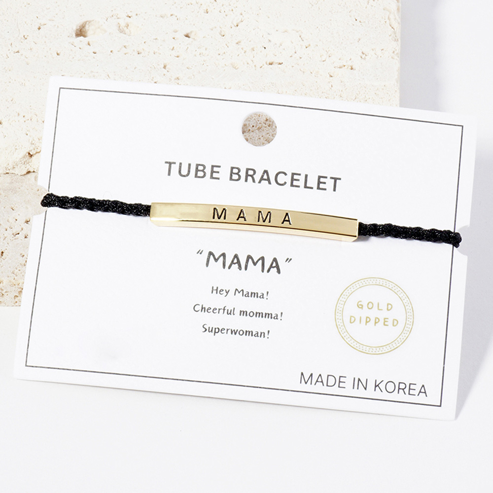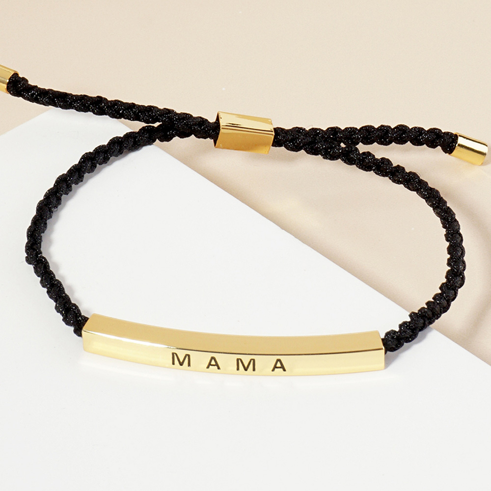 White Gold Dipped MAMA Message Bar Pointed Rope Adjustable Bracelet