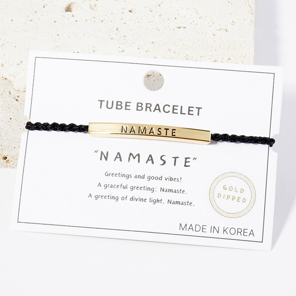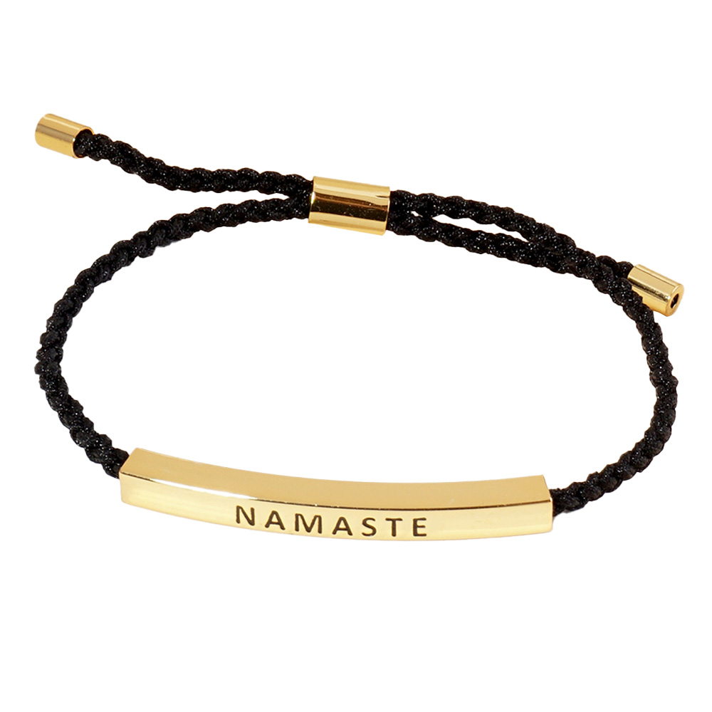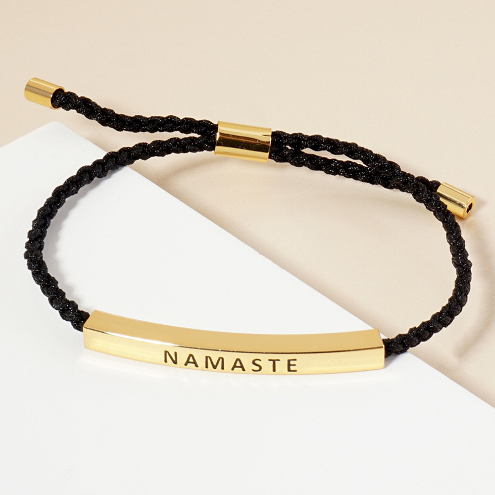 White Gold Dipped NAMASTE Message Bar Pointed Rope Adjustable Bracelet