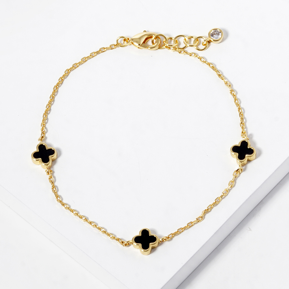 White Gold Dipped Triple Quatrefoil Link Bracelet