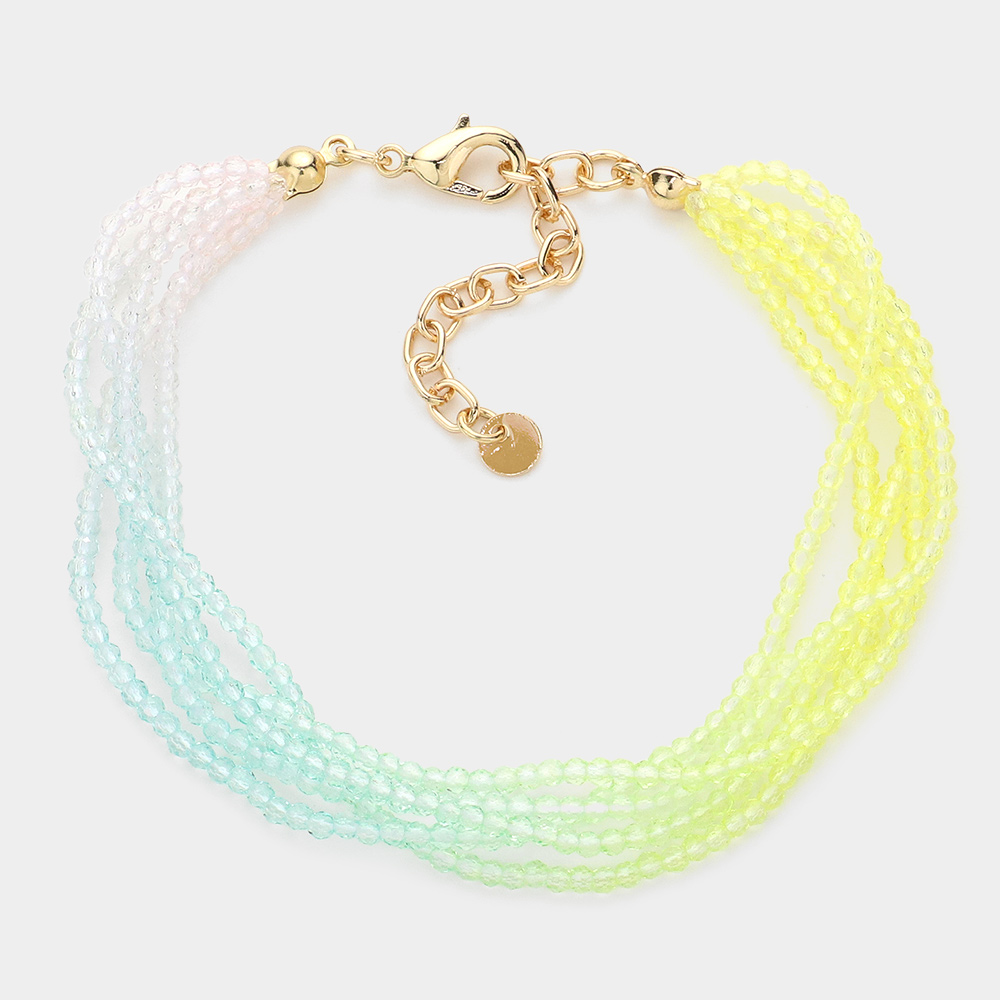 2PCS - Chunky Marbled Resin Metal Beaded Stretch Multi Layered Bracelets