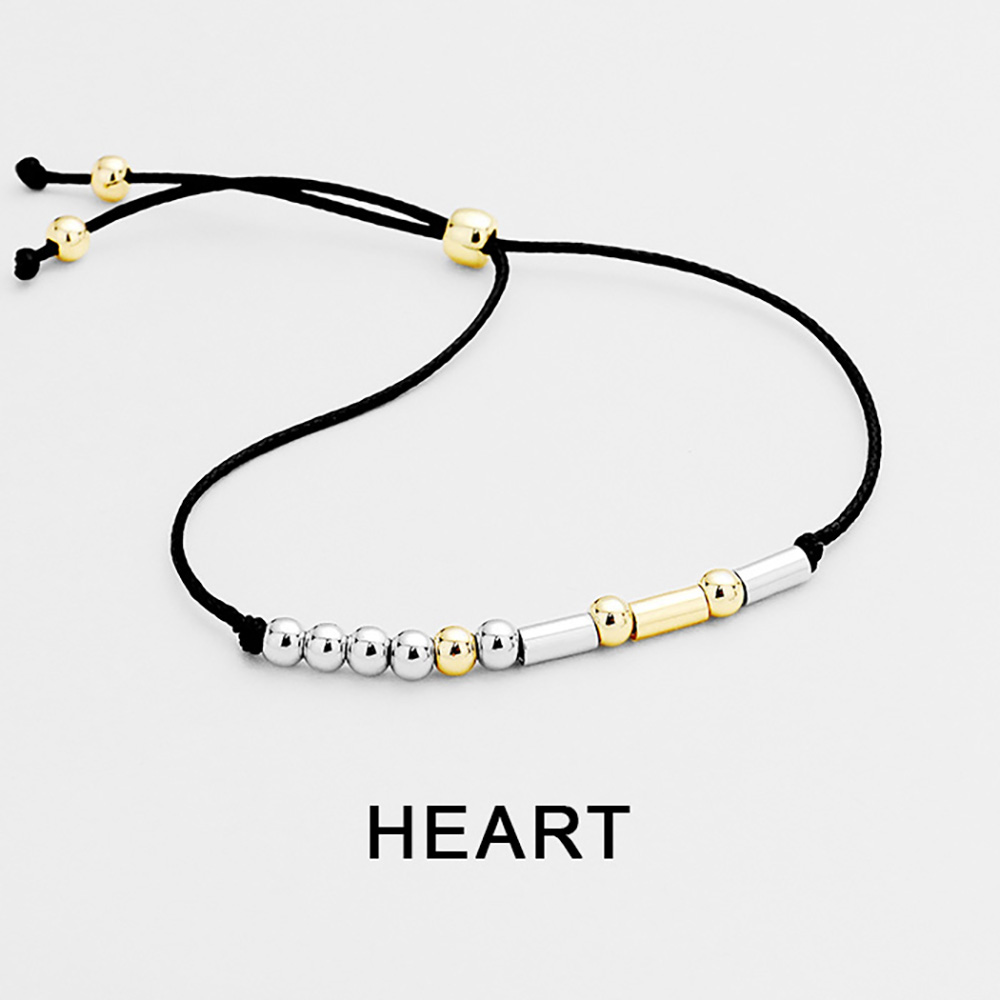 HEART Message Morse Code Adjustable Cinch Pull Tie Bracelet