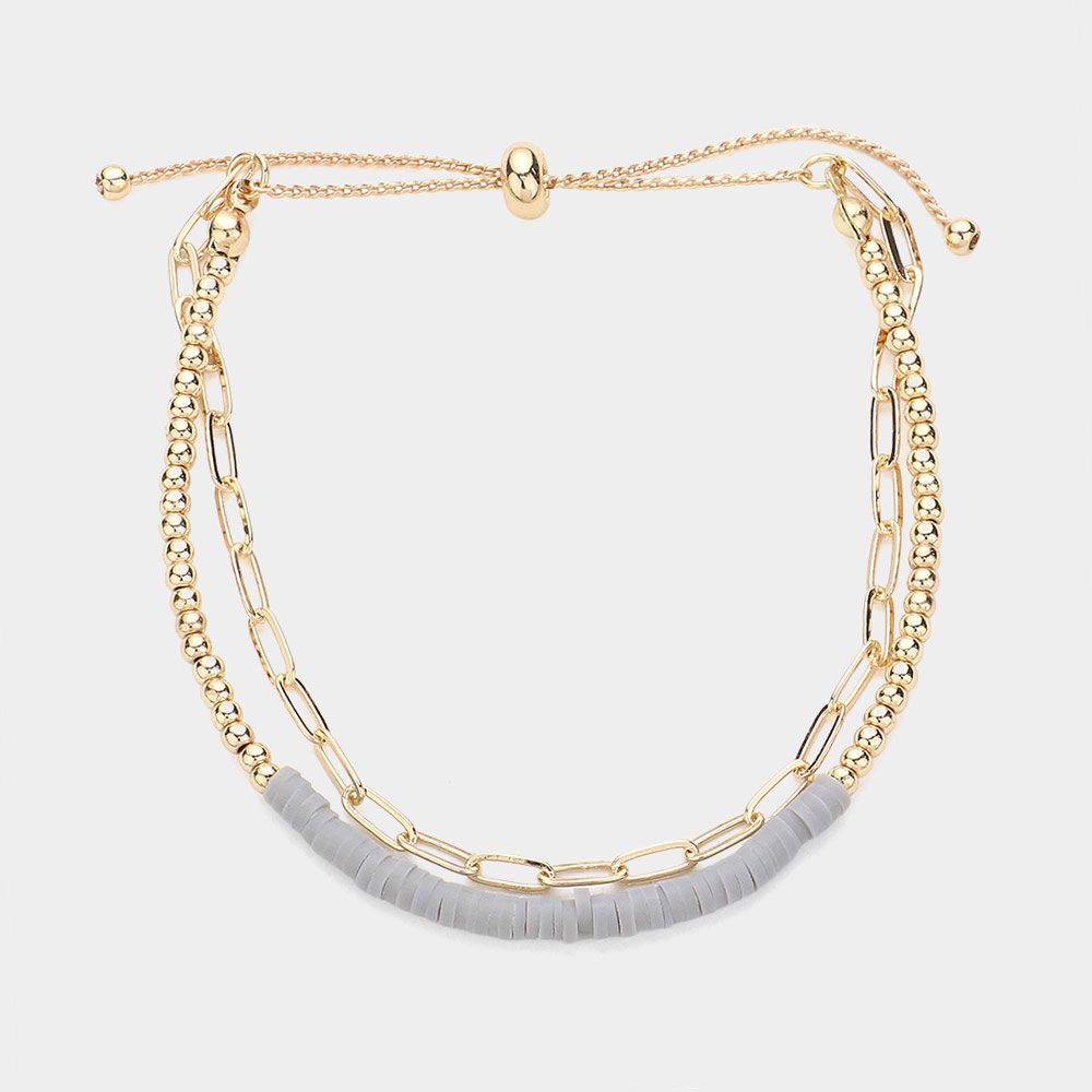 3PCS - Metal Faceted Beaded Stretch Multi Layered Bracelets