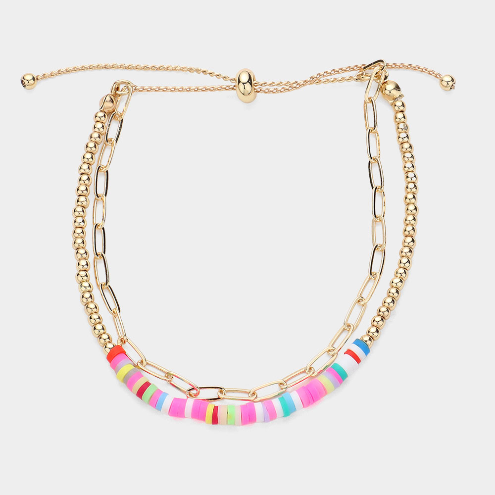 Gold Dipped CZ Stone Paved Rim Heart Charm Pointed Bracelet