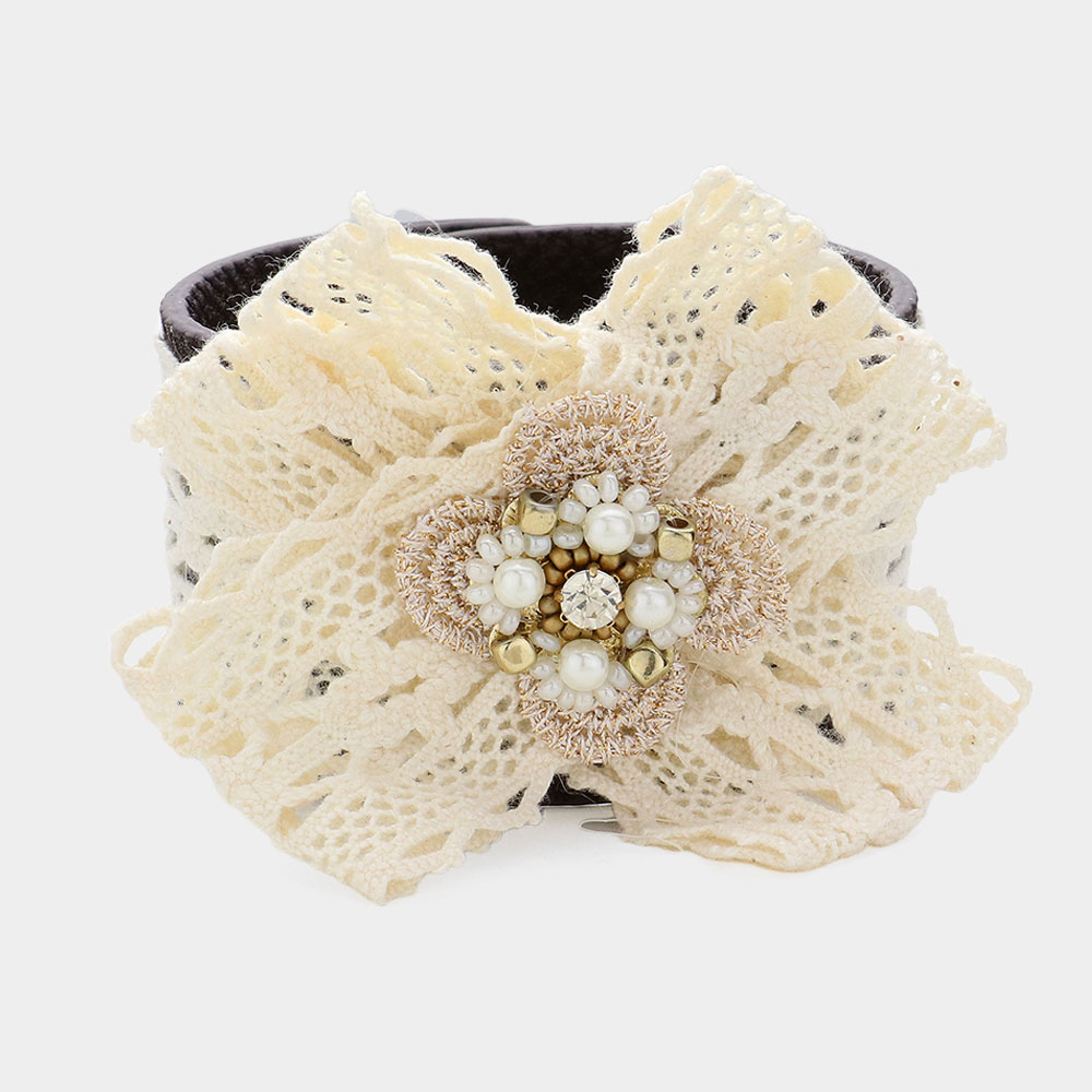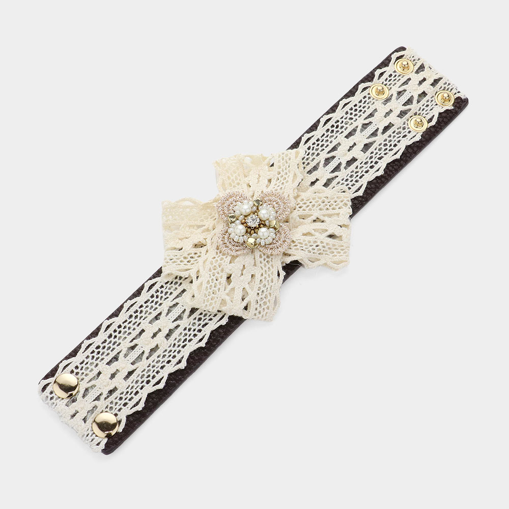 Laced Flower Faux Leather Wrap Snap Bracelet